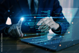 IT Information Technology. Developer presenting IT upgrade plan in modern office.