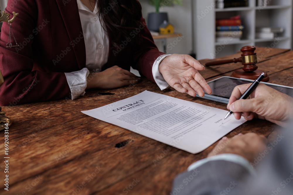 Legal Consultation, Businessman and lawyer discuss the Law contract document. Treaty of the law. Sign a Law contract business.