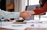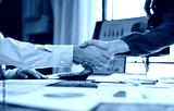 Business handshake in the office, Business partnership concept. Cropped image of two businessmen handshake.