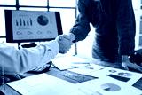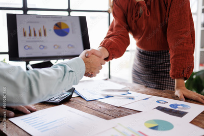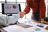 Business handshake in the office, Business partnership concept. Cropped image of two businessmen handshake.