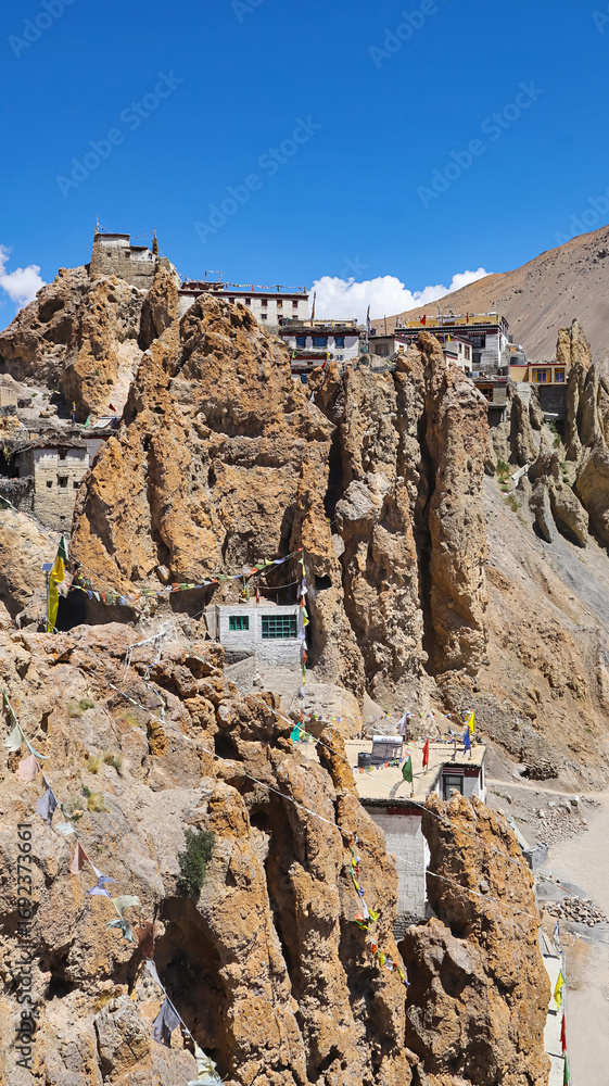 View of Dhankhar Monastery, Built in 11th Century is one of the Oldest Gompa in Spiti Valley, Dhankhar, Lahaul Spiti, Himachal Pradesh, India.