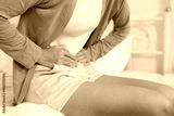 Close-up of women holding her lower abdomen in pain, indicating menstrual cramps, digestive issues, or abdominal discomfort, perfect for health, pain relief or medical content.