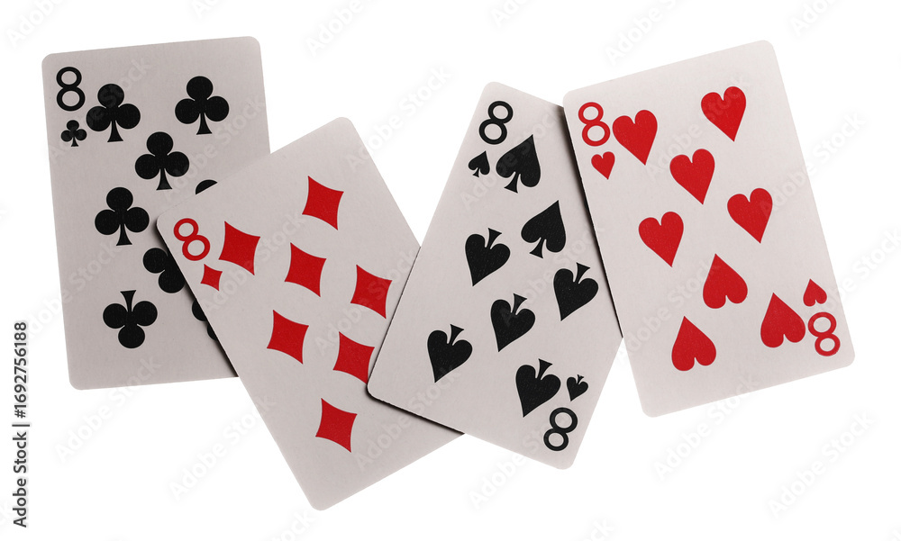 Playing cards for poker and gambling, set eight isolated on white background, clipping path