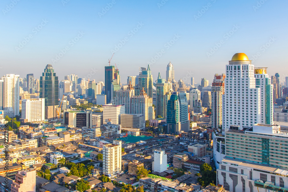Bangkok city skyline aerial view at day time and skyscrapers of midtown bangkok.