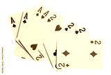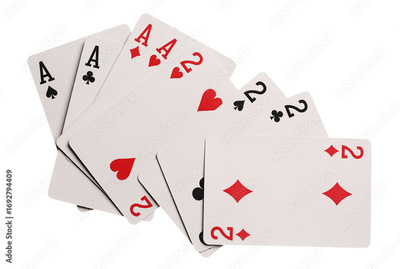 Flying playing cards for poker and gambling, set four deuces and aces isolated on white, clipping path