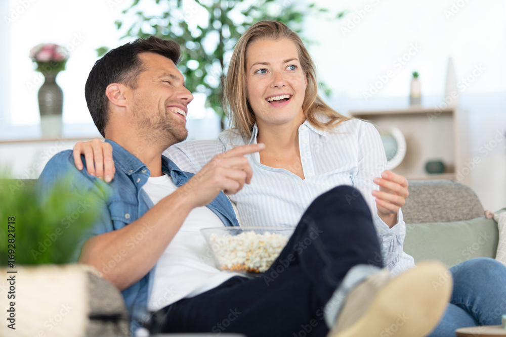 relaxed couple on the sofa eating popcorn