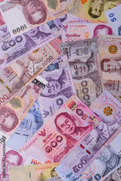 Thailand paper money, dinar banknotes as currency for exchange or travel. Thai money