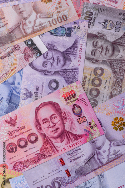 Thailand paper money, dinar banknotes as currency for exchange or travel. Thai money