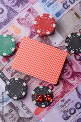 Casino and gambling in Thailand, risk to win or lose money. Betting chips as a background