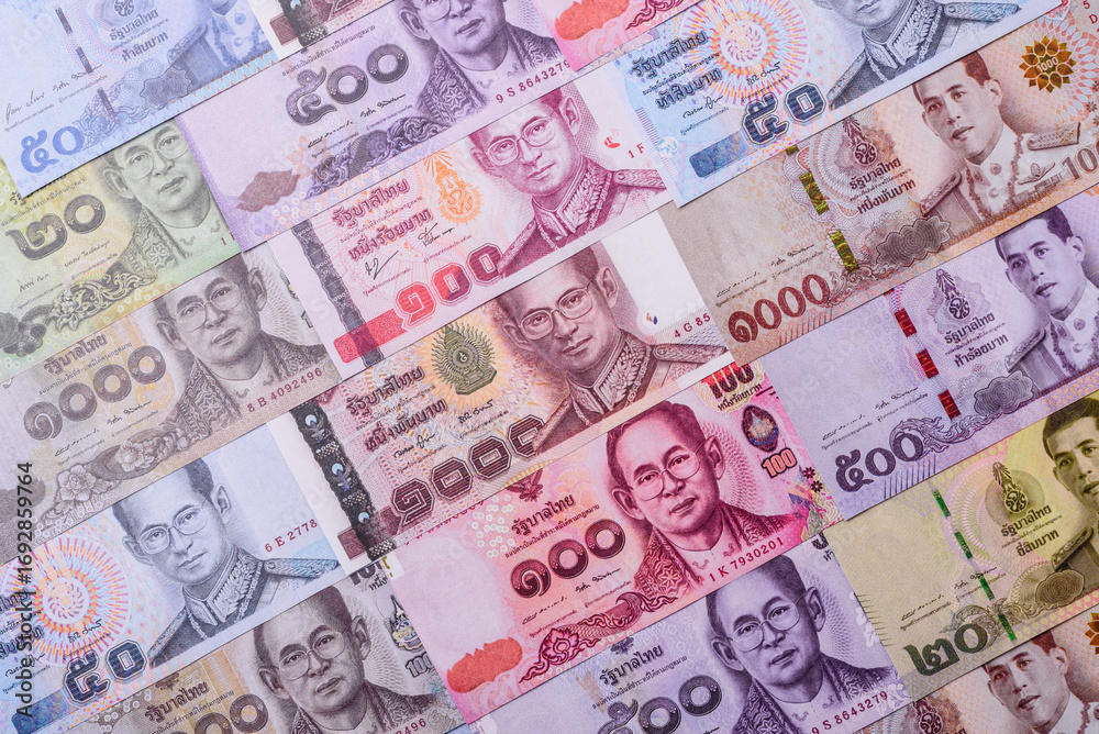 Thailand paper money, dinar banknotes as currency for exchange or travel. Thai money