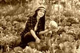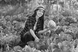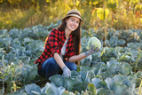 Happy woman gardener with cabbage