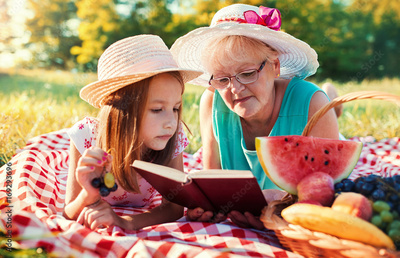 Little girl and her grandmother enjoying picnic together. Lifestyle concept