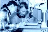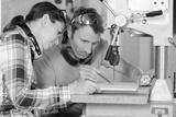 carpenter woman and man in wood workshop