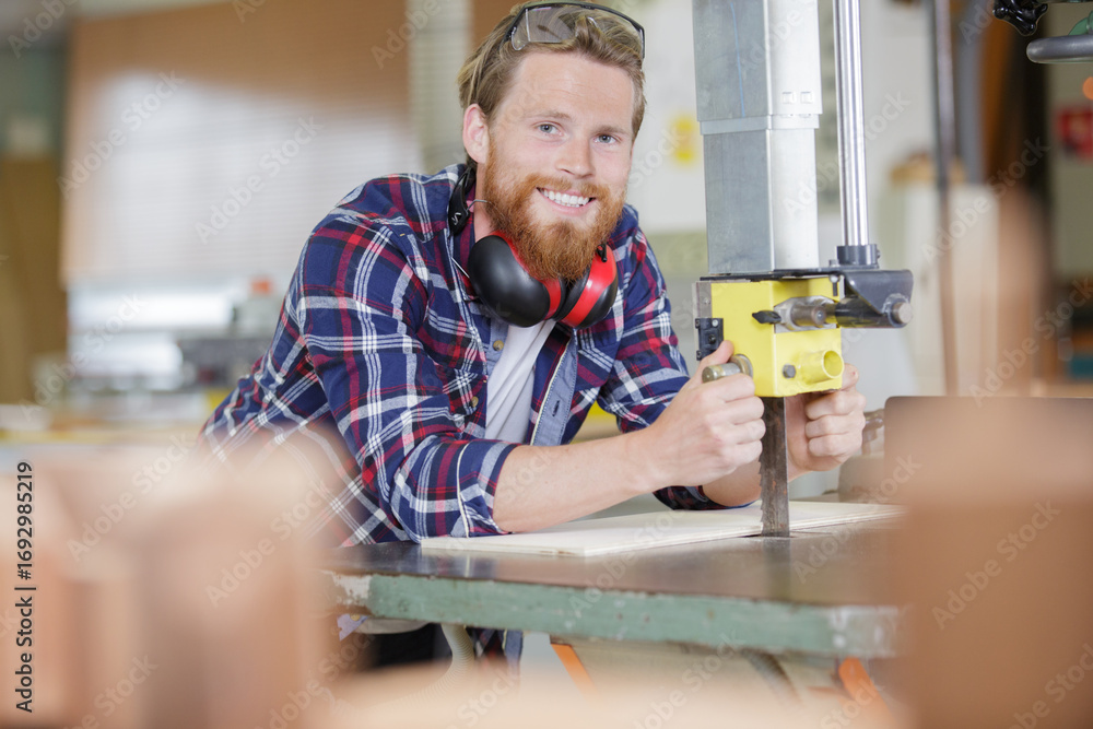 carpenter holds a milling machine