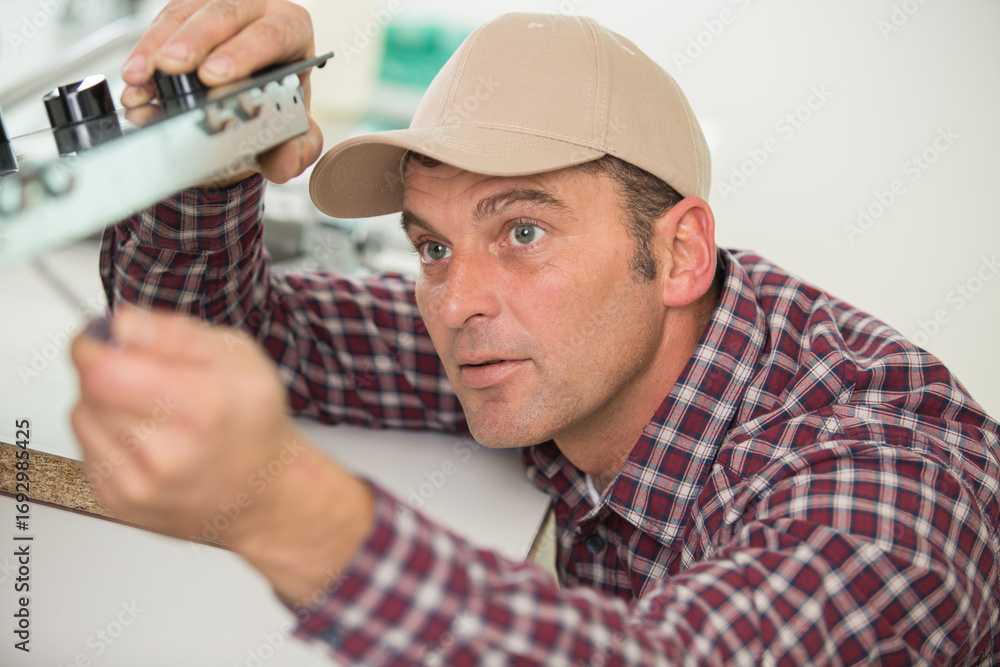 man installs a kitchen sink