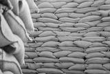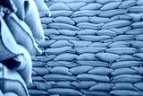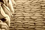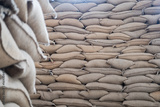 hemp sacks containing coffee bean in warehouse. stacked sacks in storehouse.