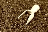 Organic linseed or flaxseed texture or surface as background.