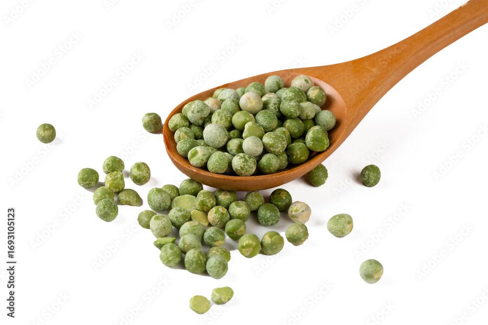 Uncooked, split, green peas background. Dry peas grains. Top view