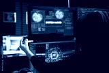 Hacker targets systems with virus infected USB, getting system hacked popup alert on display. Evil man uses USB stick to compromise networks, hiding online activity after stealing data