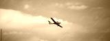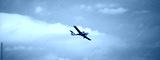 Small plane on blue sky background