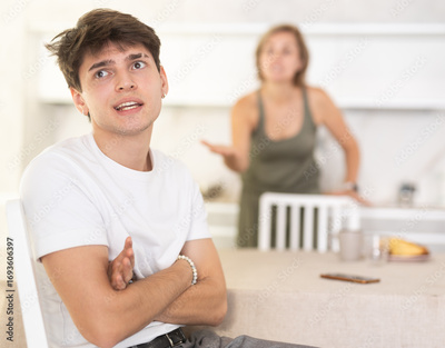 Woman screams and swears at son in connection with inappropriate behavior, violation of personal boundaries and space