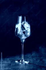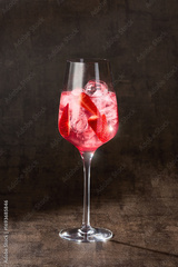 Strawberry spritz in retro glass, moody lighting, minimalist closeup composition