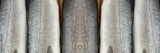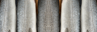 Fish scales texture background, sea bass skin close up, macro shot of silver labrax scale