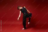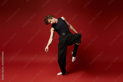 Dynamic expression of youth through dance in a vibrant red studio setting