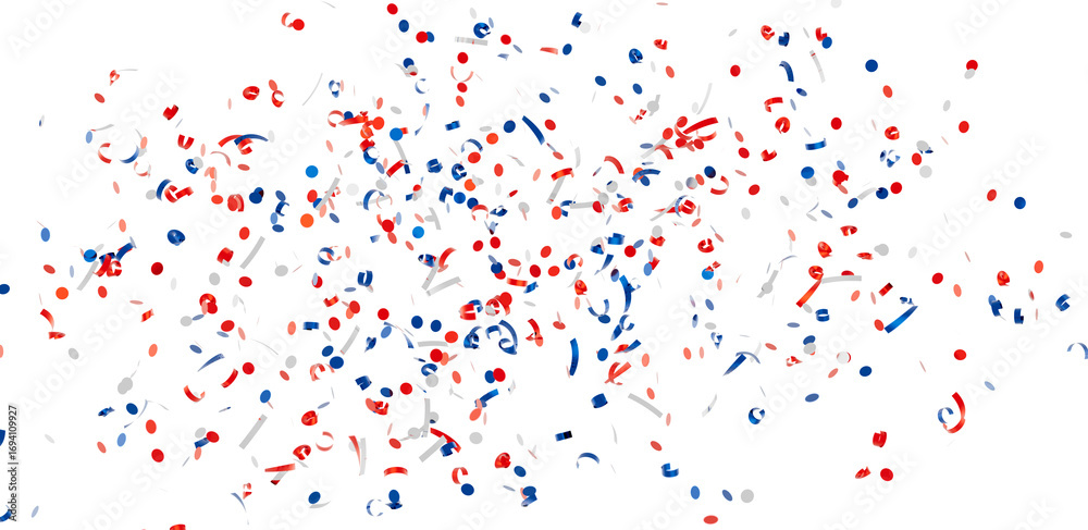 Festive confetti background with red, white, and blue colors. Perfect for celebrations and holidays.