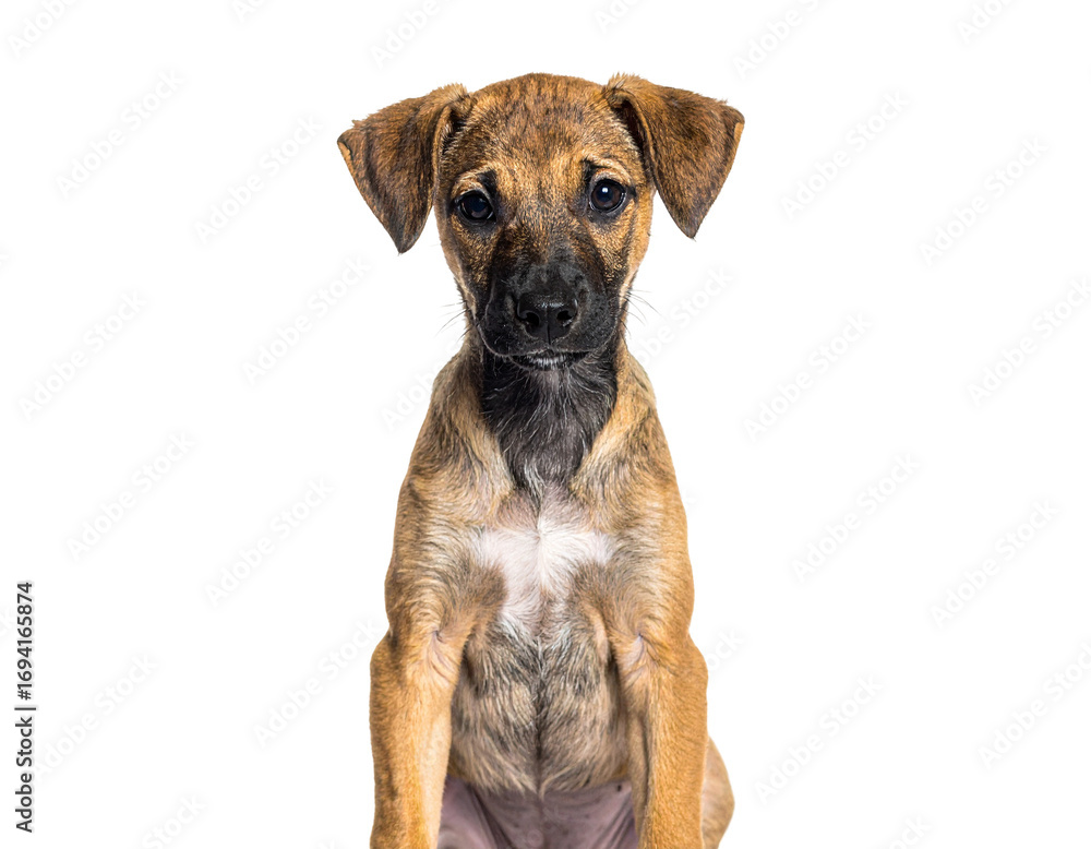 Thin stray puppy with innocent eyes sitting upright PNG