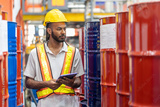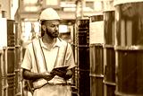 African black male worker working check in chemicals storage in petrochemical oil gas plant factory