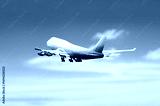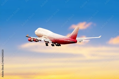 Airplane flying in blue sky, for travel concept background