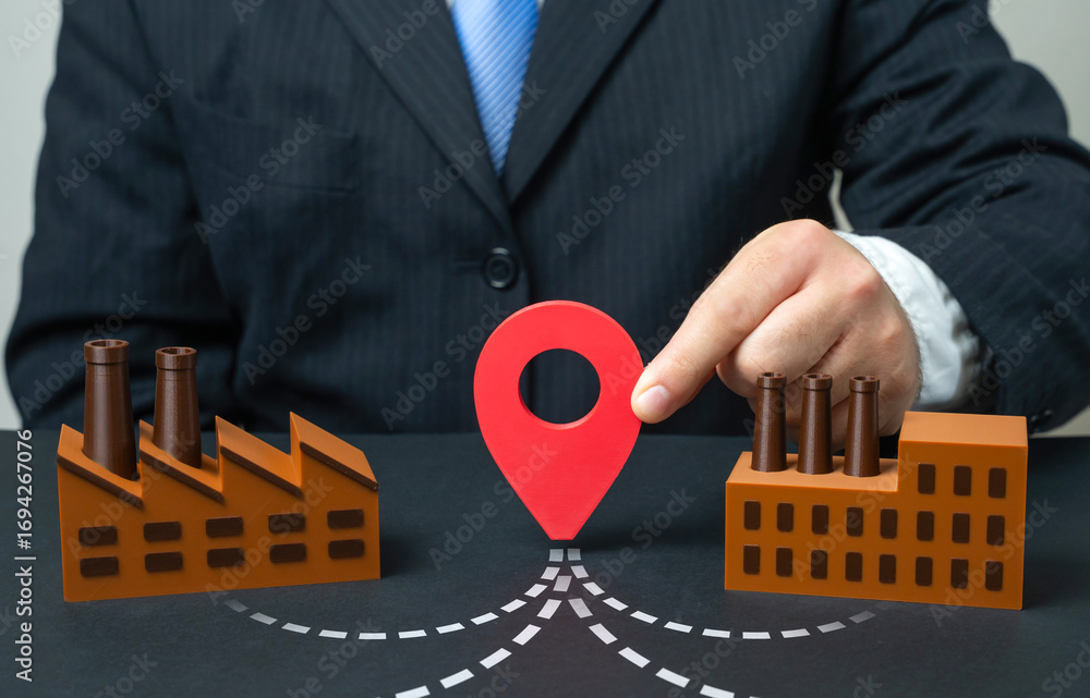 Industrial center. Technological park. New construction project and supply chains. Interaction of different manufacturers in the project, innovation hub, economic growth, global logistics.