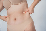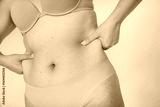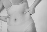 Young woman embracing body positivity in natural lingerie showcasing beauty and confidence on a white background