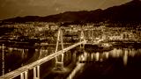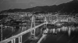 Badong Yangtze River Bridge Illuminated at Dusk with Mountain City Backdrop, China
