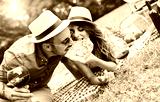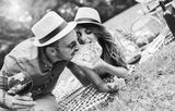 Couple enjoying picnic together. Love and tenderness, dating, romance, lifestyle concept