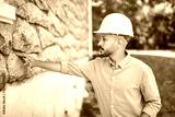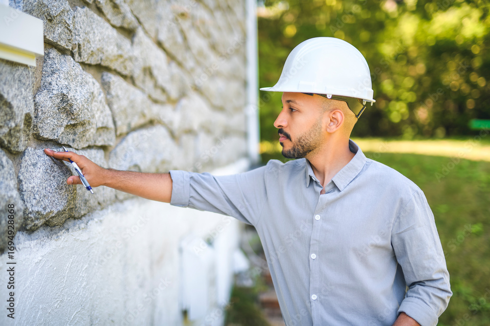 Arab islamic man with hard hat house inspector