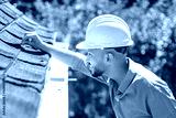 Arab islamic man with hard hat to roof inspector