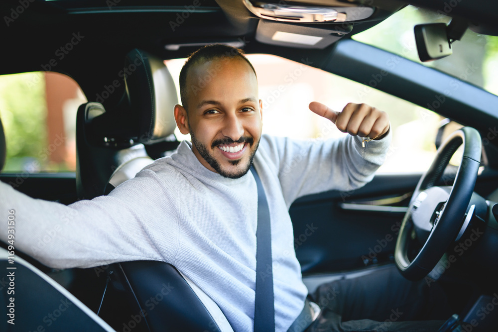 young islamic arab man with his new car