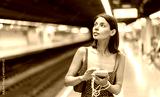 Relaxed female passenger with cellphone in hand trying decide the route in subway