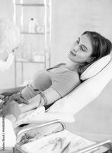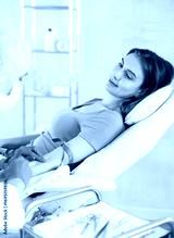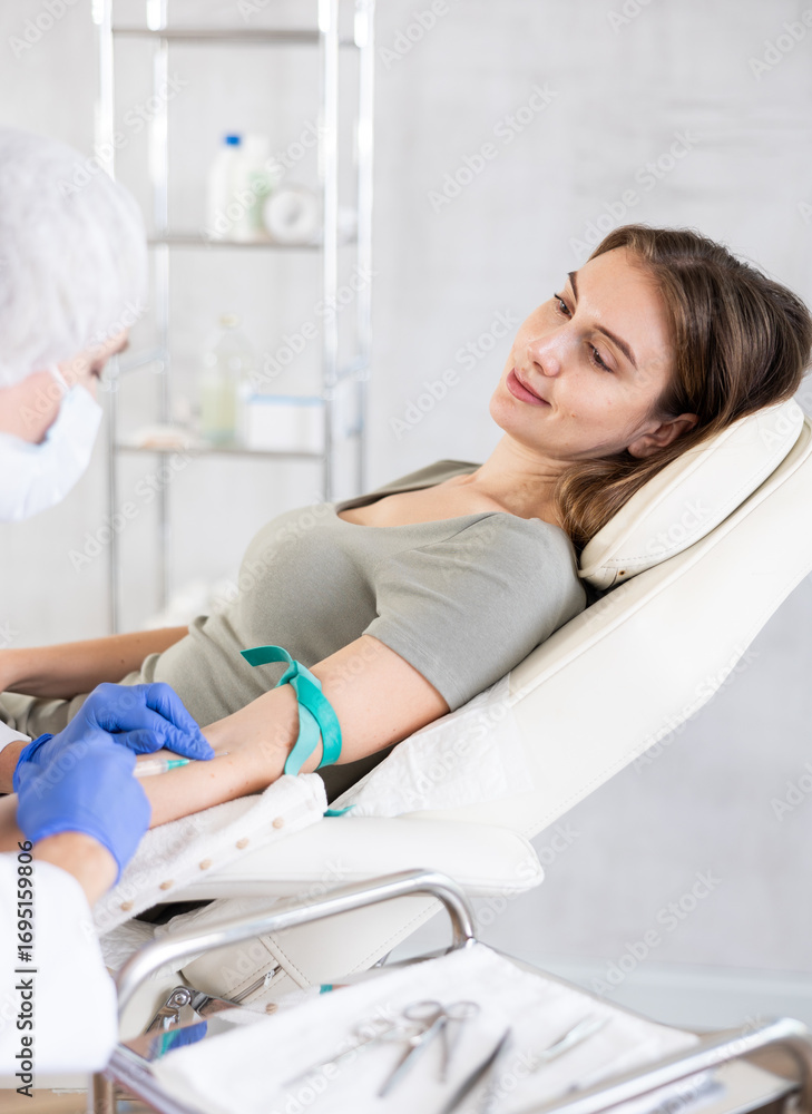 Young female patient having intravenously injection by nurse at treatment room of hospital