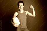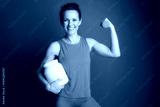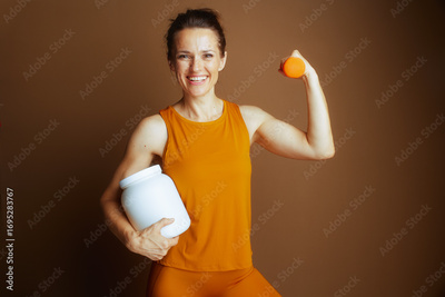 Fit Woman with Supplements and Dumbbell