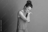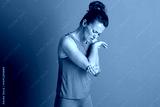 Woman with Elbow Injury and Pained Expression