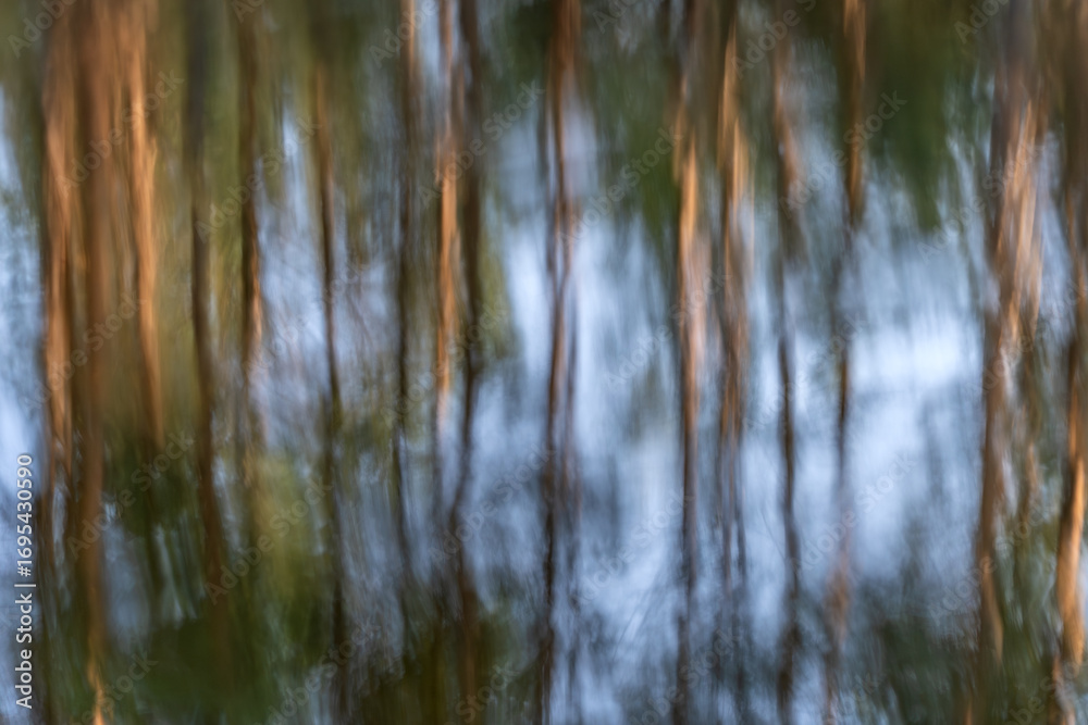 Drzewa na tle nieba w odbiciu jeziora