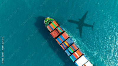Aerial view of the freight shipping transport system cargo ship container. international transportation Export-import business, logistics, transportation industry concepts