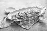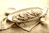 Low carb zucchini and vegetable pancakes on kitchen table
