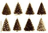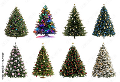 PNG Colorful festive Christmas trees variety, element set on transparent background