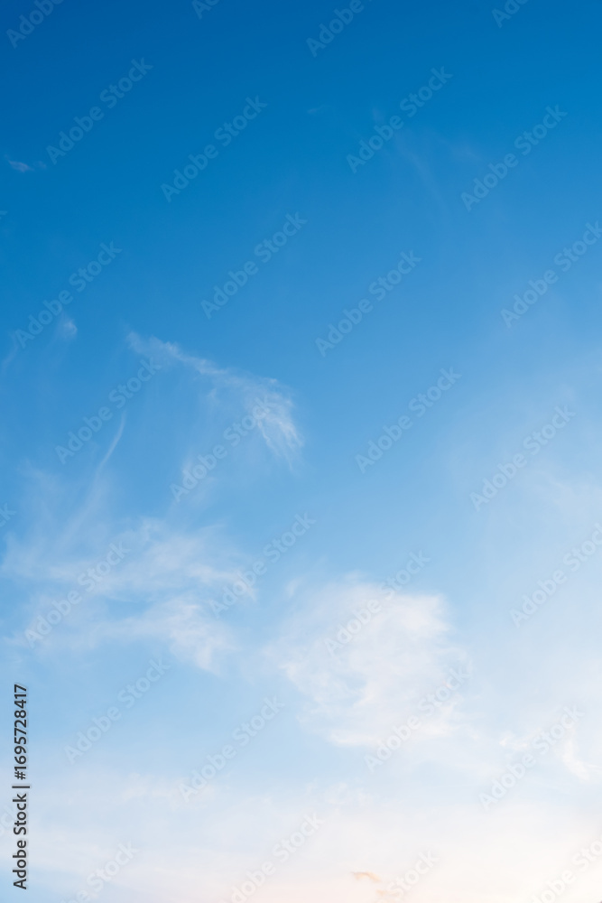 Sky blue background.Vertical Spring sky,cloud with morning light,Summer clear sky,white cloudy, over beach and sunlight, illustration sunrise for environment day,Cartoon Nature in Winter season