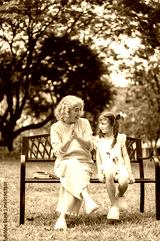 Old woman granny clapping cheering for a kid girl granddaughter after dancing on grass in the park.
