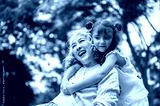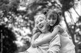 Old woman grandmother smiling as getting hugged by a kid girl granddaughter while chilling in park.